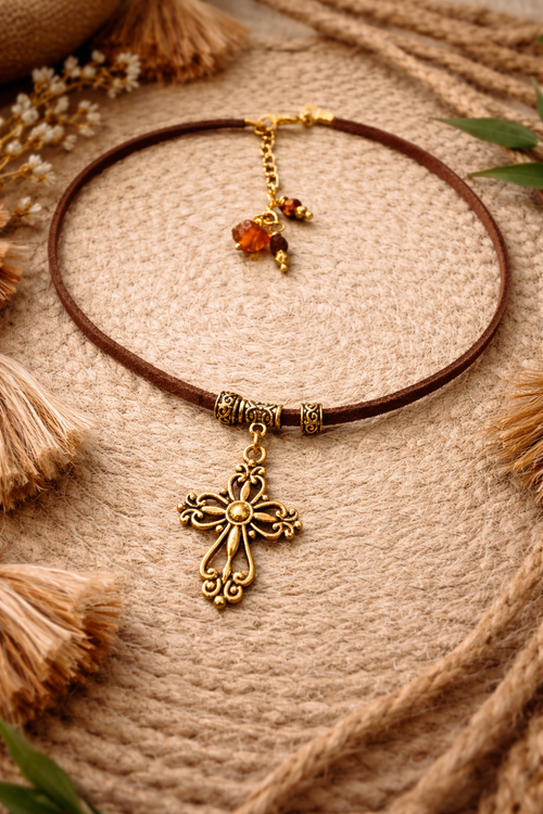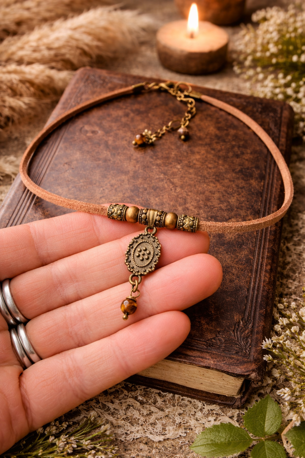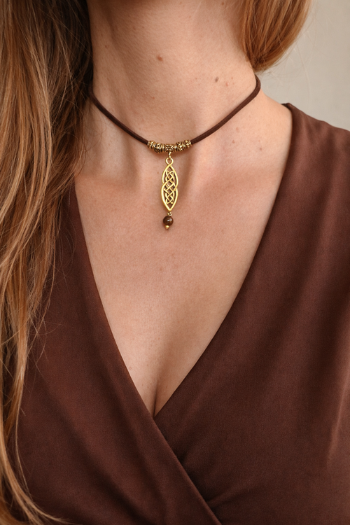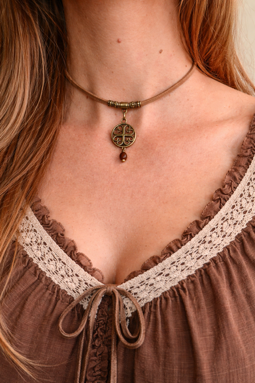 Choker serce brązowe boho – naszyjnik vintage talizman ziemi