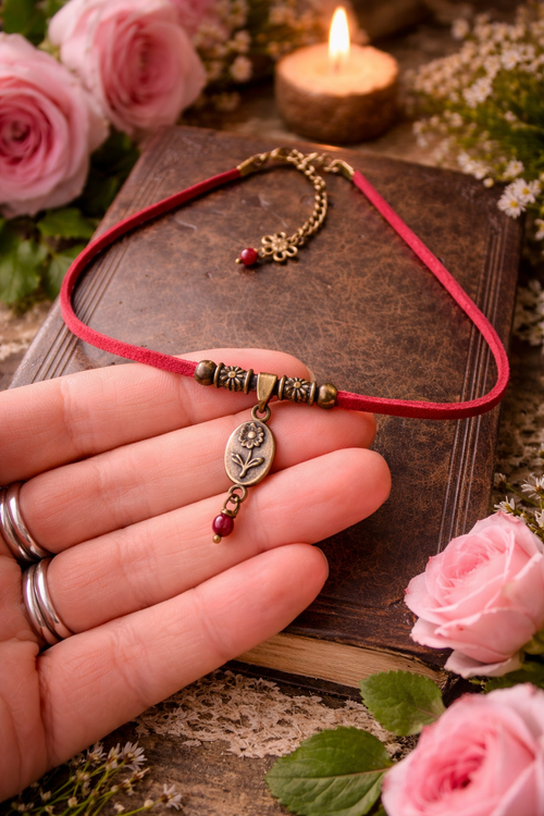 Choker serce boho – naszyjnik z zawieszką serca, romantyczna biżuteria vintage